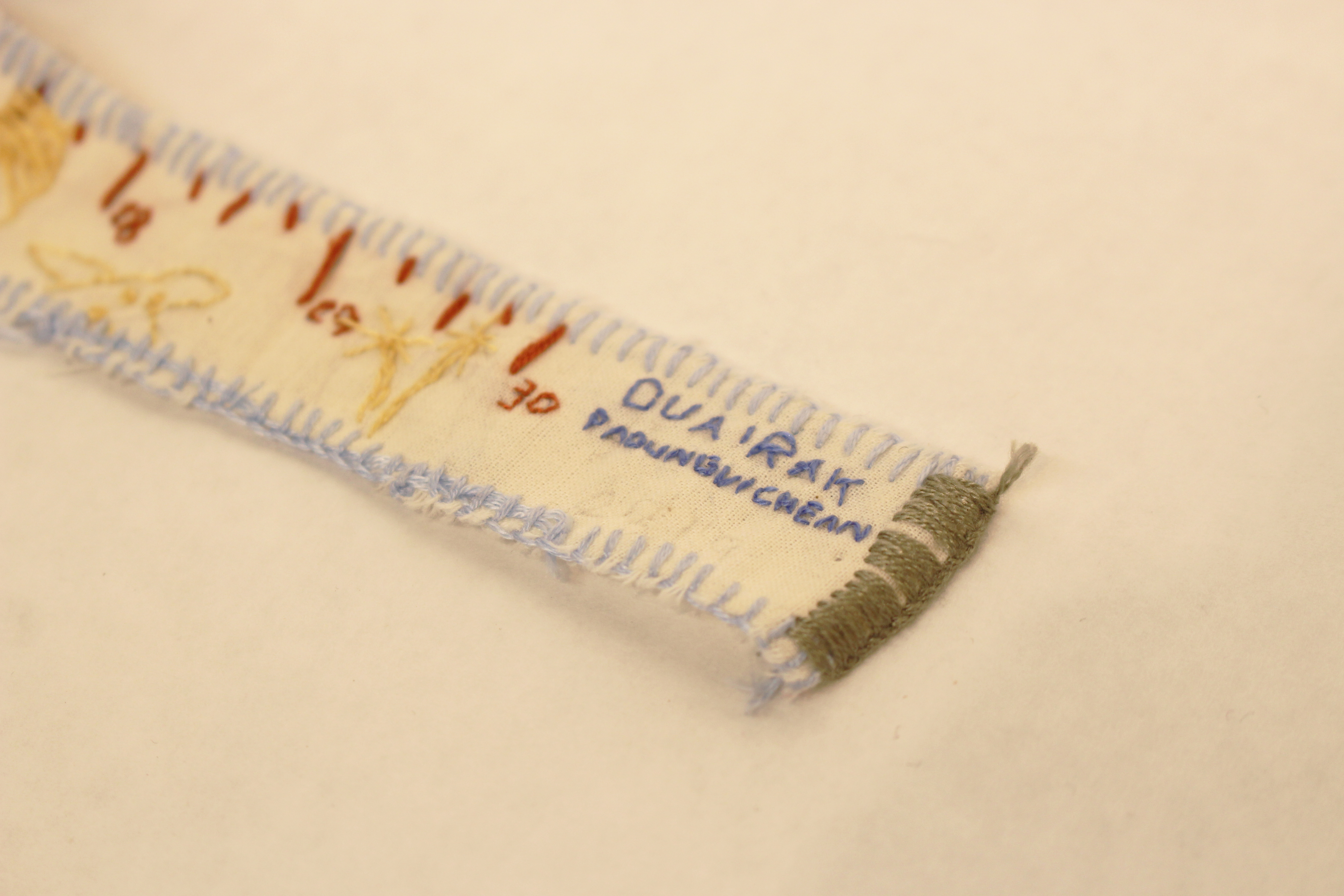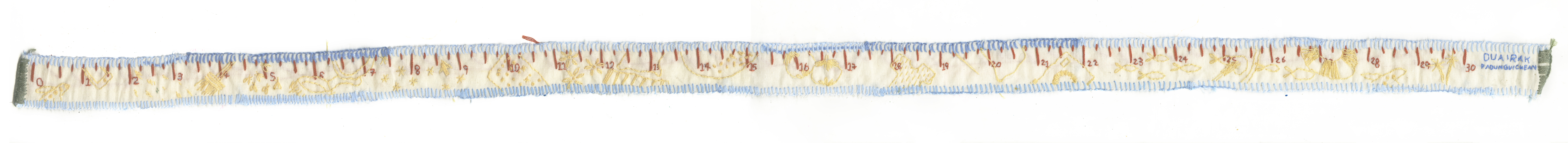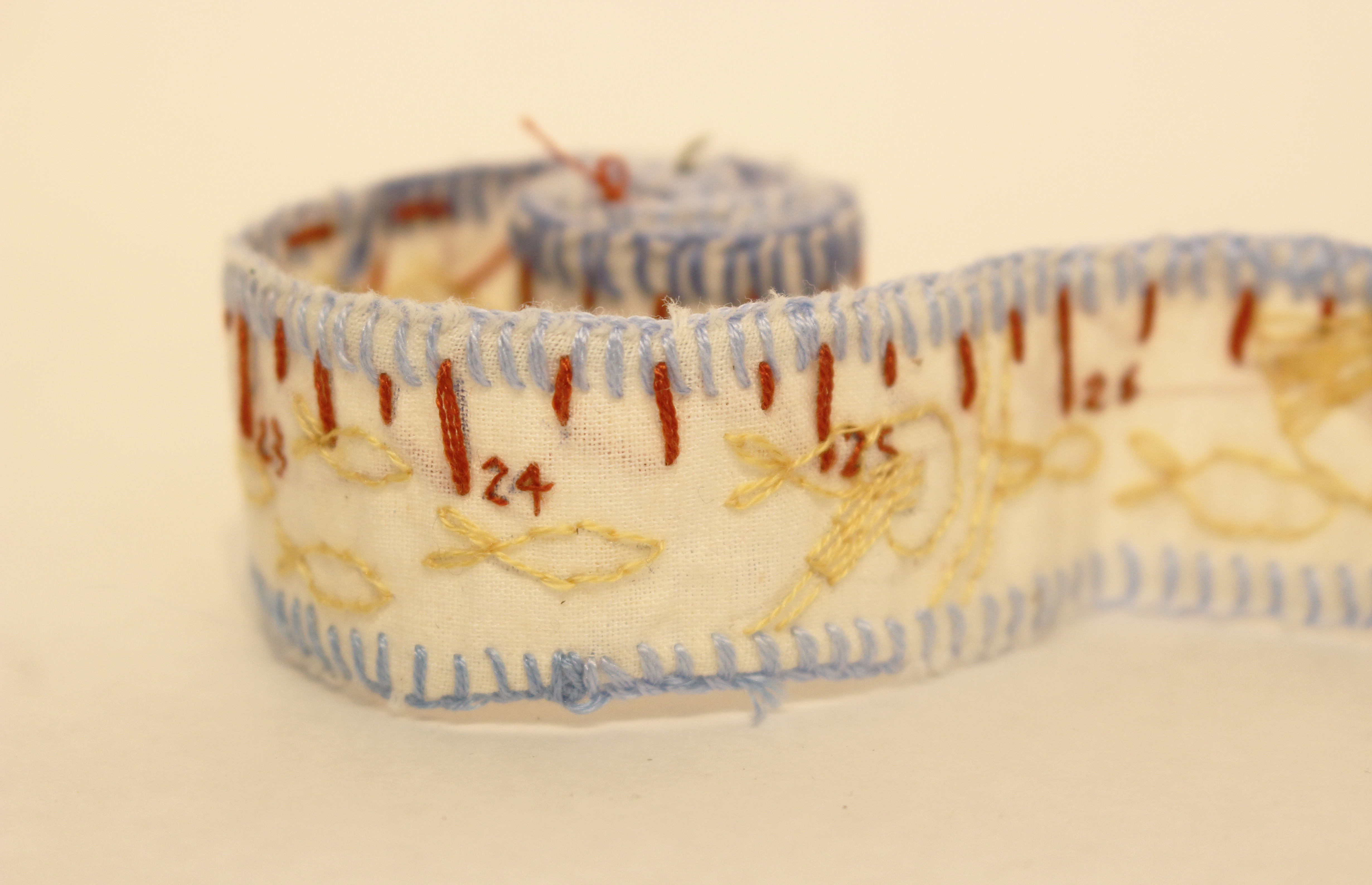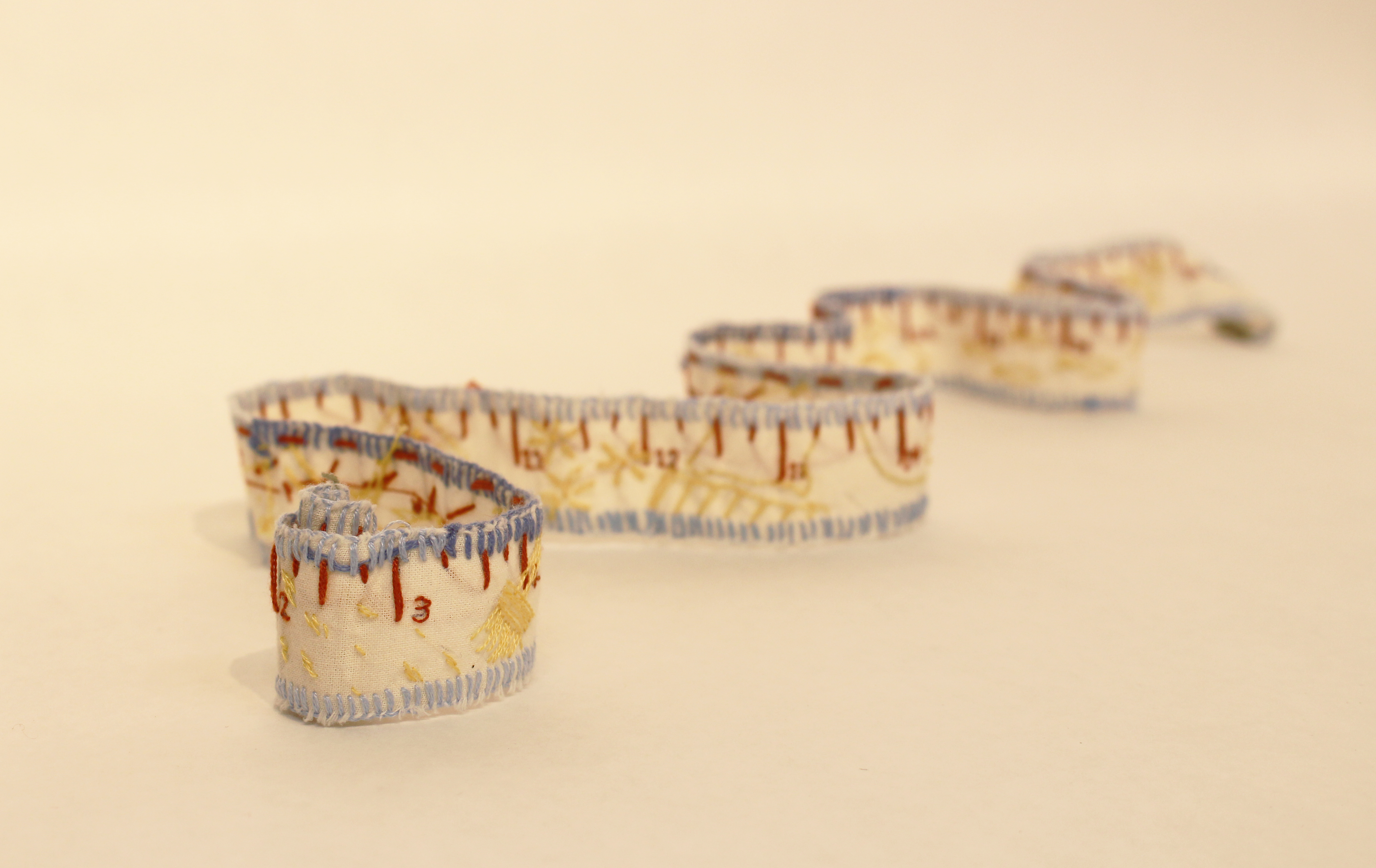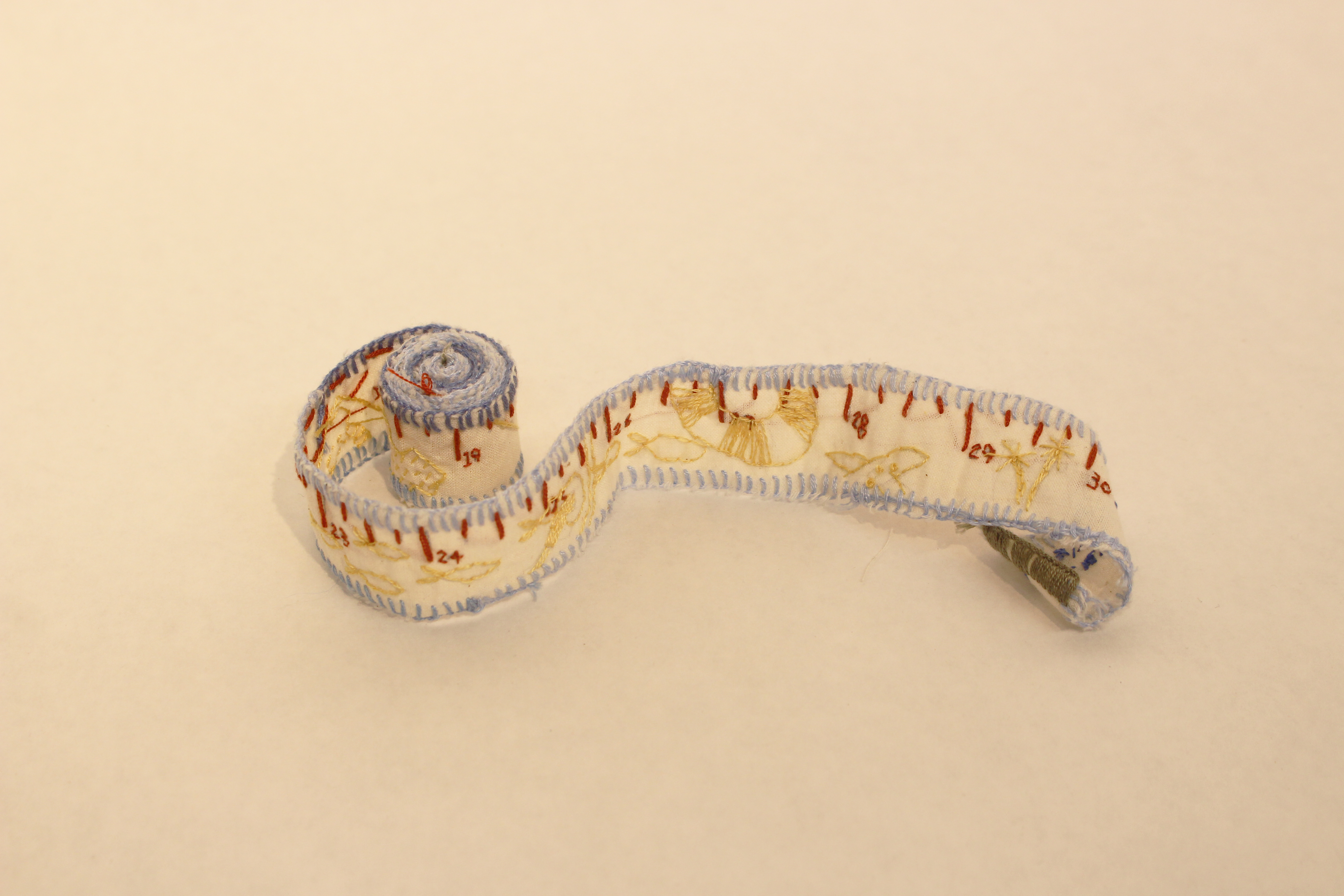 A measuring tape scaling my favorite things. Scale 1:1 embroidery on cloth.