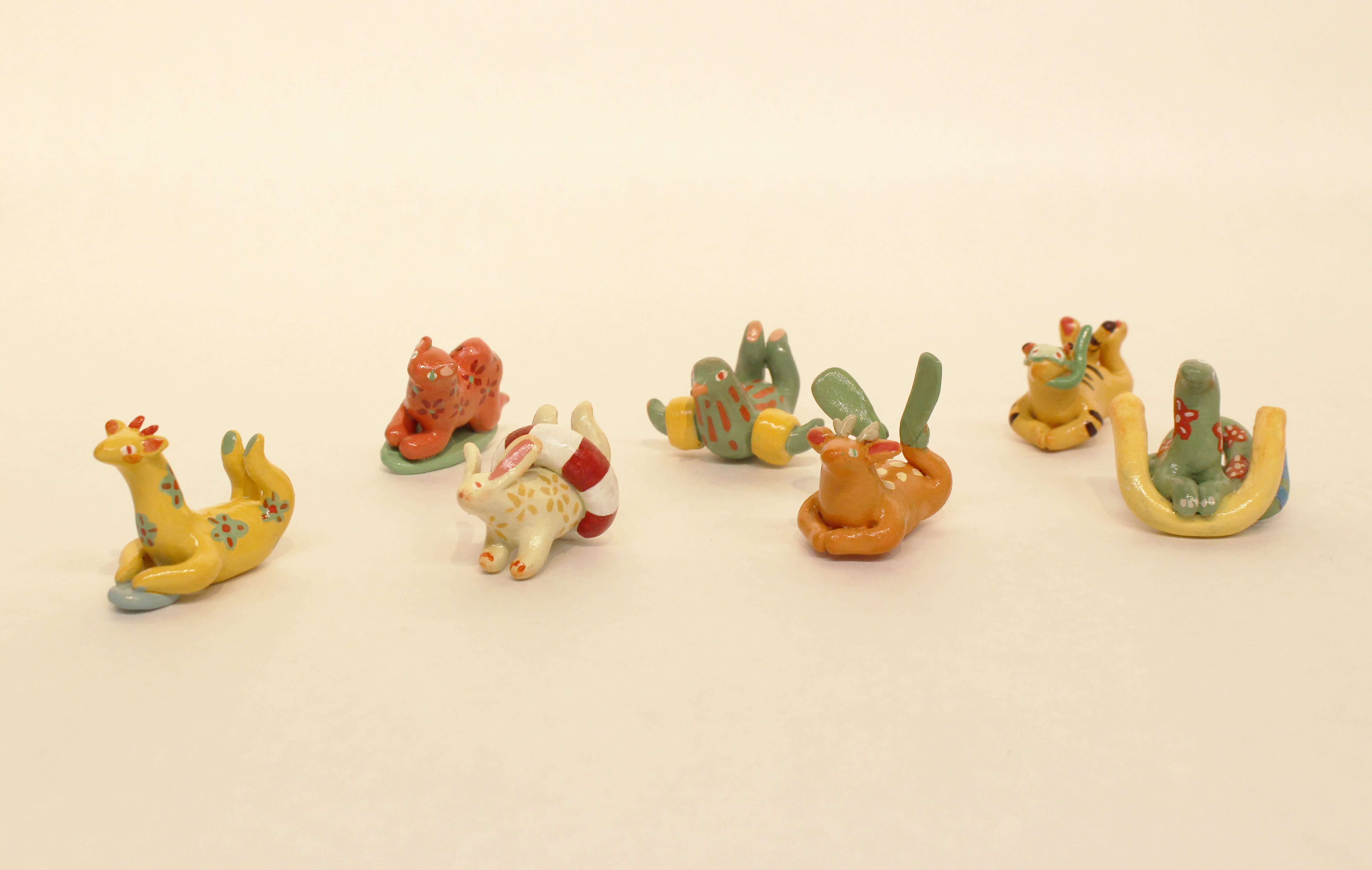 A collection of collectable tiny figurines inspired by different animals having fun in the swimming pool.